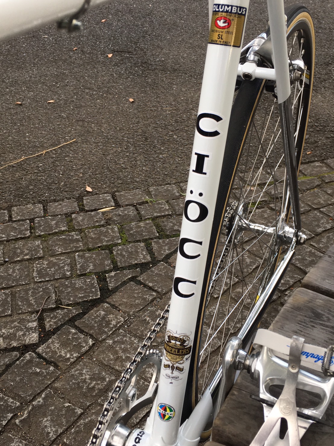 フレームはブレーキホールあり、BBハイトはTRACK用ではなくFIXEDギア用に低めにオーダー